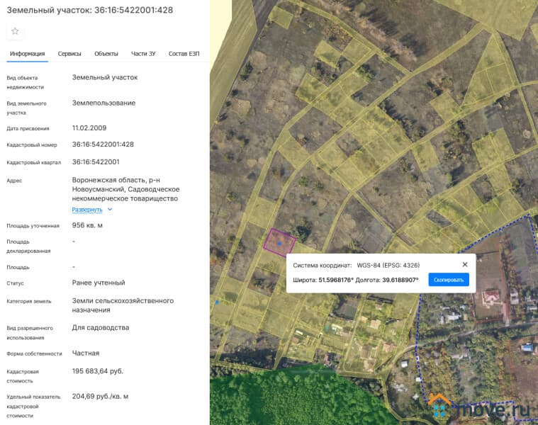 Координаты участка 51.596875 39.618686